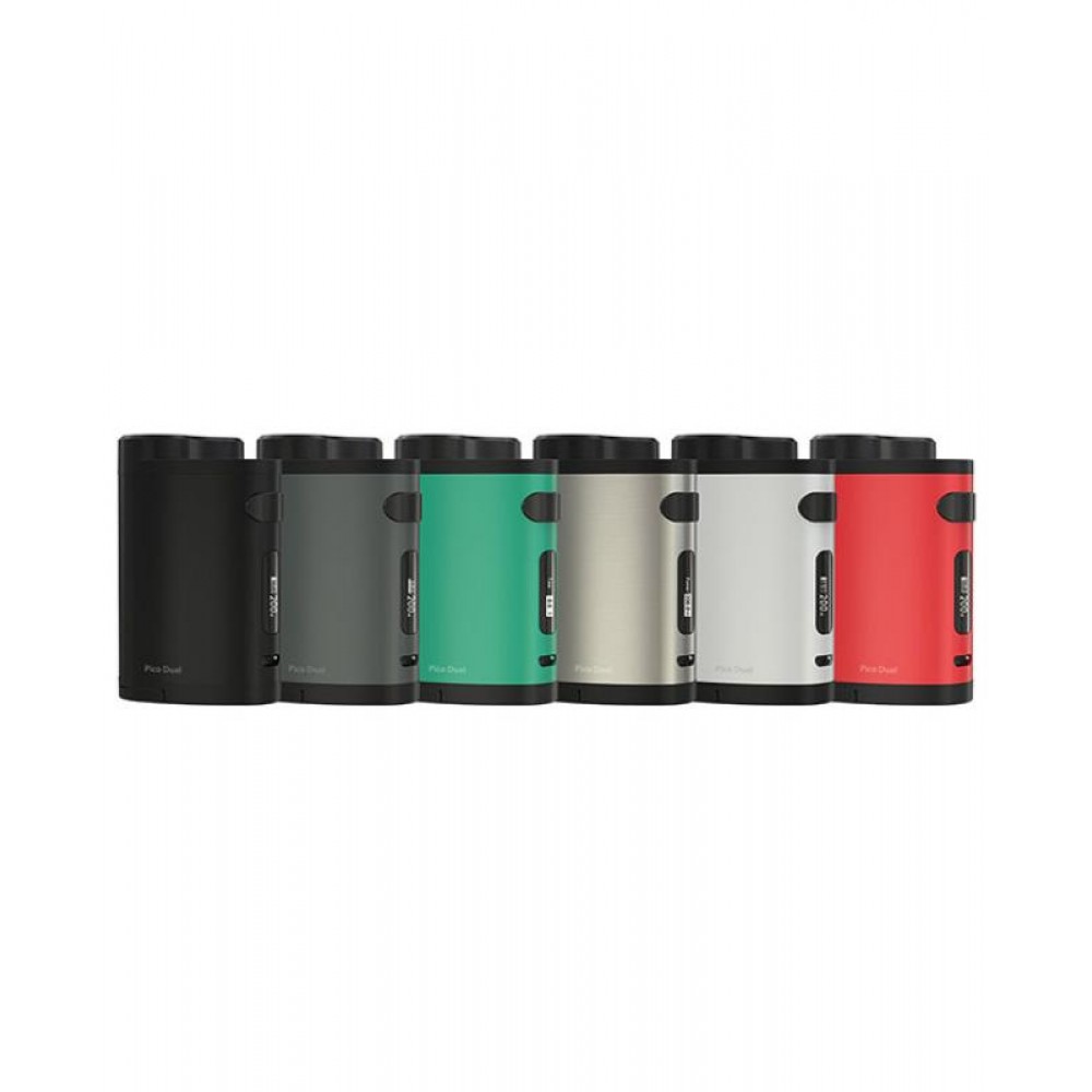 Pico dual is newest eleaf company compact size but powerful temp control mod, six fashionable colors avaliable, max output 200watts, features new cell balancing trickle charge system and delivers a maximum charging current of 1.5A for quick charge capability when using the avatar quick charge. powered by 2pcs 18650 batteries, support resistance as low as 0.05ohm, different output modes switchable, the new firmware comes with preheat function, custom logo as well as different interfaces for you to check your total puffs and total vaping seconds, new and innovative RC adapter will convert the pico dual's 510 thread into a USB output for power bank. recommend works with Melo 3 mini tank.