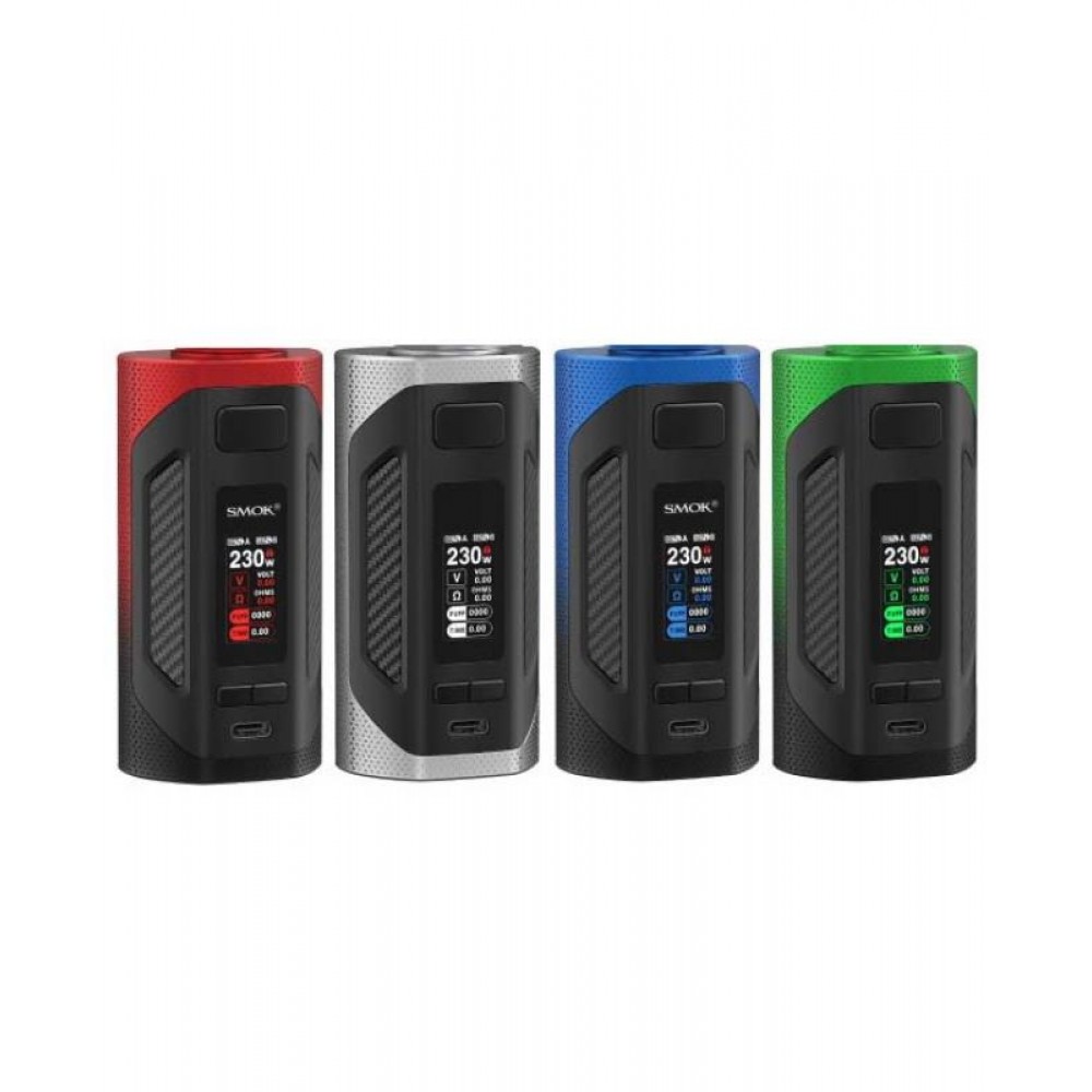 Check the Smok Rigel Box Mod, with the compact zinc alloy structure and the ergonomic shape design for comfortably hold in the palm and pocket-friendly. the battery door with classic carbon fiber elements, there are numerous honeycomb holes on it for better heat dissipation. adopts the outstanding chipset makes the perfect combination of performance and easy to use. the max output power up to 230W and the instantly firing time low to 0.001S. you always get the intense flavor and massive vapor from the first puff. the Smok Rigel Kit powered by dual high-rate 18650 batteries and max output up to 230W, you can press the UP and DOWN buttons to adjust the output between 1W to 230Watts. the fast charging system and type-C fast charging port will ensure the 18650 batteries will be fully charged in a short time. the fronted panel equipped with 0.96 inches TFT colorful screen display with an advanced user interface according to your preferences and provide six theme colors, will show you the vaping data clearly, like battery life, output power, voltage, resistance value, puff numbers and vaping time. the Smoktech Mod with multiple types of protection to avoid the potential risks to ensure the vaping safe and reliable. compatible with the Tanks that diameter not over 28mm, recommend works with TFV12 Prince, TFV9 Tank, TFV16 Lite.